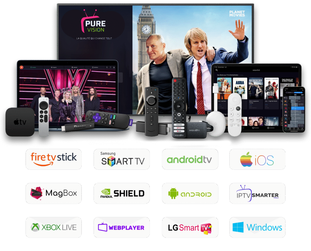 A Purevision IPTV subscription is compatible with Windows, macOS, iOS, Android, Amazon Fire TV, Fire Stick, Android TV, Apple TV, Samsung Smart TV, Chromecast, and many other devices